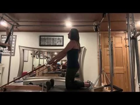 It is so important to not rush through your footwork, whether it be on the reformer as here or on the chair or 2X4. It's the key to really accessing your seat in the saddle. Pay special attention to unifying the lift of the powerhouse with the push. It's important to keep lifting at the top because there is more length than you usually think in your pelvis. The focused time on footwork pays huge dividends in the saddle I promise, as well as in your life. It helps you carry better, walk better, age better.
